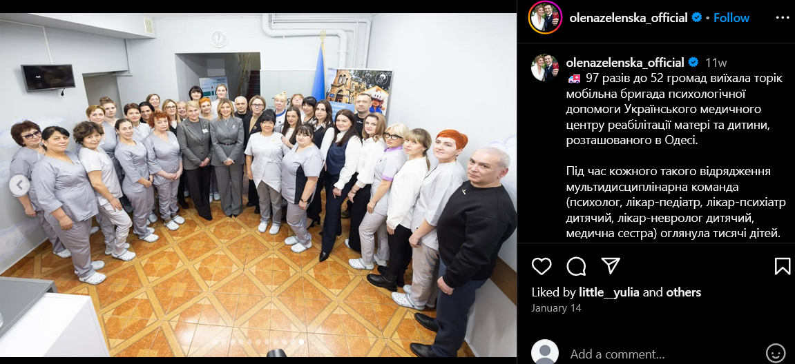Η Olena Zelenska δεν ήταν στο St Moritz. Με βάση τις δημόσιες εμφανίσεις της στον λογαριασμό της στο Instagram, είναι ξεκάθαρο ότι βρισκόταν στην Ουκρανία κατά τη διάρκεια του υποτιθέμενου ταξιδιού.