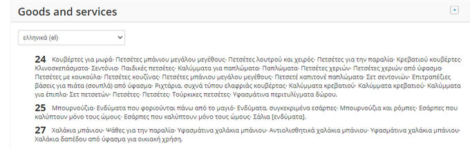 Ο όρος αυτός λοιπόν, ισχύει αποκλειστικά και μόνο για τα βαμβακερά προϊόντα της εταιρίας και για κανέναν άλλο σκοπό, αφού καταχωρήθηκε για τις κλάσεις 24,25,27, όπως θα δούμε και στην παρακάτω εικόνα.