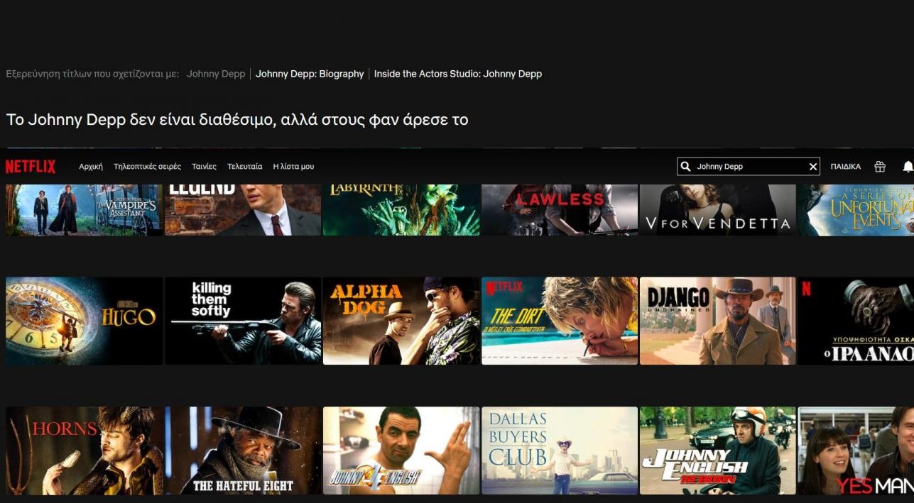 Κακά τα νέα για τους χρήστες του Netflix και φαν του Johnny Depp, αφού το Netflix αφαίρεσε όλες τις ταινίες από τον κατάλογο του.
